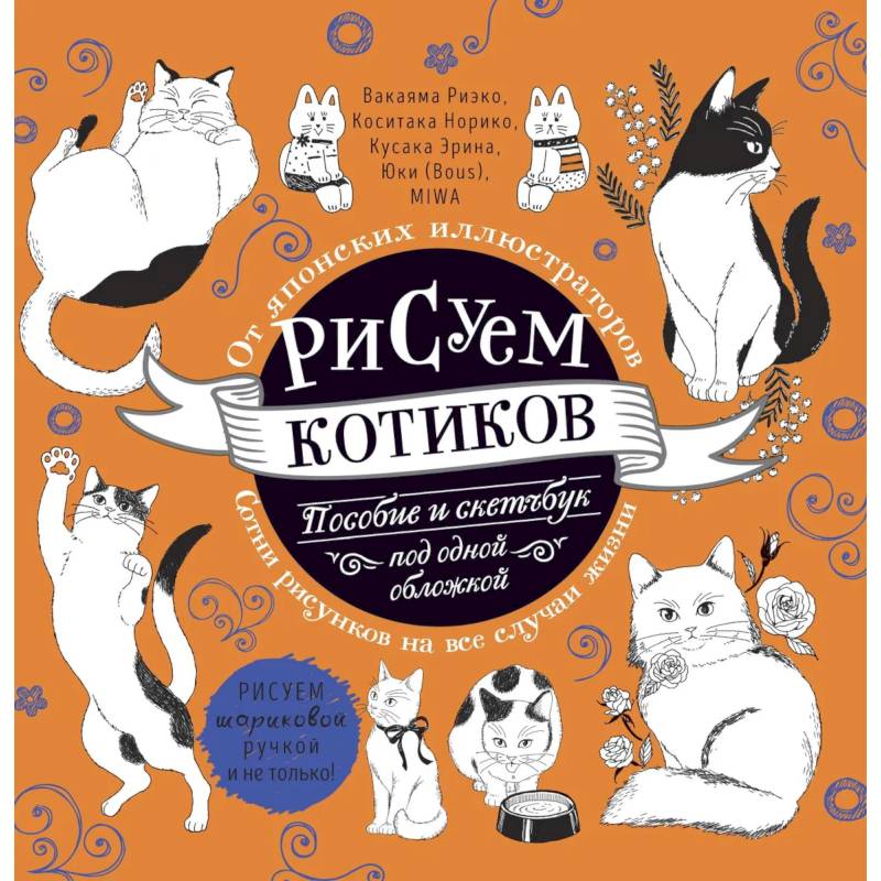 и приступим! Будет весело! Это пособие-скетчбук от японских художников – только для тех, кто любит котиков. Оно не научит вас основам классического рисования, композиции и перспективы. Зато вас ждёт настоящая кошачья вселенная – милые, пушистые, своенравные и дурашливые котики, нарисованные шариковыми ручками в разных позах. Эти рисунки украсят ваш блокнот, ежедневник или планер. В теоретической части издания вы найдёте множество пошаговых описаний, приёмов и чётких инструкций, как передать различные кошачьи позы и повадки буквально парой линий и штрихов. В конце книги вас ждут страницы для самостоятельного творчества: 8 страниц с контурами для раскрашивания и 7 страниц для отработки базовых рисунков, приведённых в теоретическом разделе. Вам потребуется лишь ручка или карандаш. Представляете, как здорово наблюдать, как мурчащий кот сворачивается клубочком на списке важных дел? Мы-то знаем! ОСОБЕННОСТИ ПРОЕКТА: