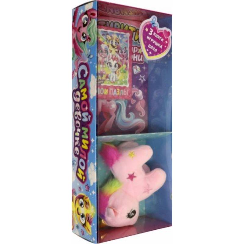 В наборе: 3 книги (активити, раскраска, IQ -задания), игрушка (размер 10х10 см), пазл (54 элемента).