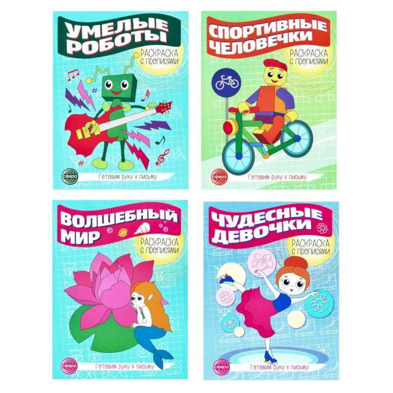 Представляем продолжение линейки тетрадей «Раскраска с прописями» по разным темам: «Волшебный мир», «Чудесные девочки», «Умелые роботы», «Спортивные человечки», «Весёлый зоопарк», «Лесные животные», «Домашние питомцы», «Умный транспорт», «Специальный транспорт», «Морские обитатели», «Динозавры», «Лесная поляна».