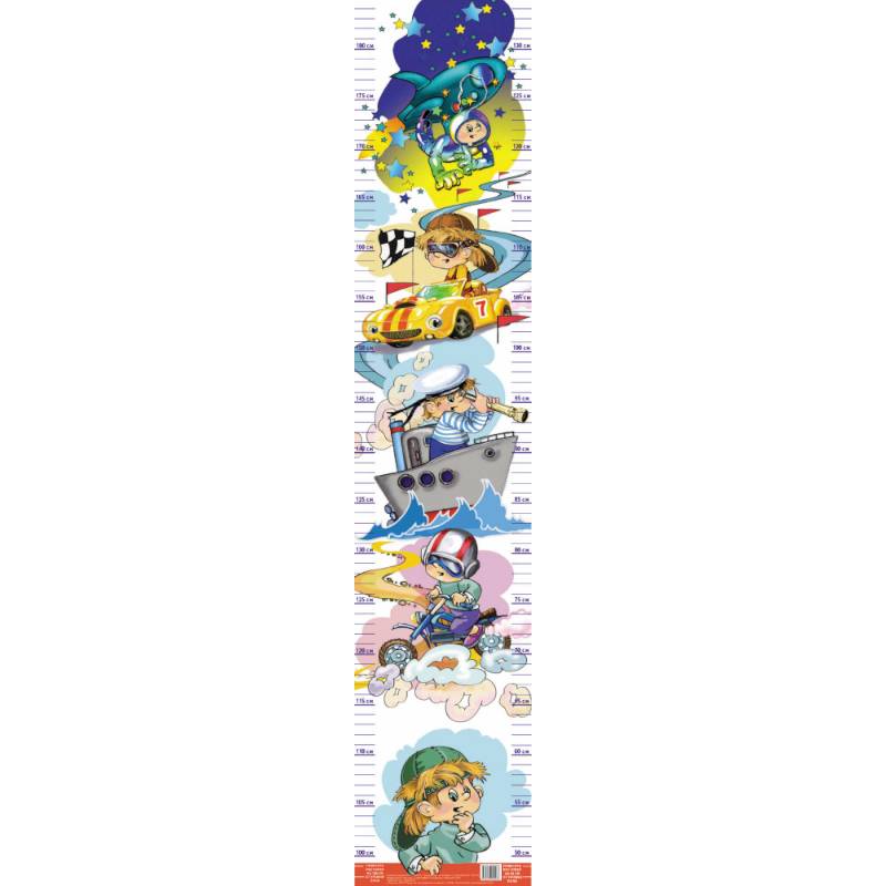 Ростомер “Для мальчиков” будет приятно получить в подарок каждому ребенку. Он имеет две шкалы и в зависимости от того, на какой высоте от уровня пола вы его повесите, рост можно измерить до 130 см или 180 см.