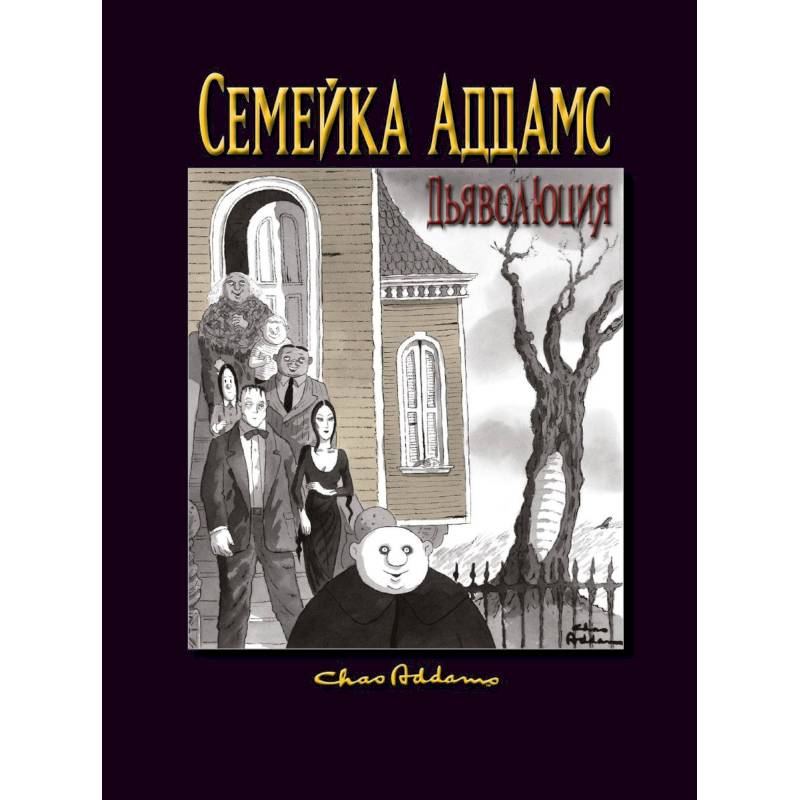 История этой эксцентричной семейки началась задолго до того, как теле- и киноинтерпретации сделали её членов иконами американской массовой культуры. Тогда ещ безымянные, Мортиша, Ларч и Вещь дебютировали в 1938 году в журнале New Yorker. Следующие 26 лет клан обрастал плотью и кровью и множился числом в рисунках его демиурга. В 1964 году Аддамсы покорили малые экраны на телеканале ABC, а в 1991-м появились и на больших.Семейка Аддамс. Дьяволюция  первая книга об истории франшизы. В ней вы найдёте более 200 карикатур кисти Чарльза Аддамса 19121988, созданных в разные годы его творческой деятельности; многие из них ранее не публиковались. Автор, Кевин Мизерокки, управляющий Фонда Ти и Чарльза Аддамсов, исследовал развитие всех членов клана например, вы знали, что Пагсли хотели назвать Пубертом и снабдил каждую главу текстами самого Аддамса. Эта книга  дань уважения одному из величайших карикатуристов Америки, его неотразимо мрачному чувству юмора и изумительному художестве