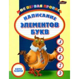 Пропись для детей дошкольного возраста. Включает в себя упражнения по написанию элементов букв и рисунки, которые ребенок может разукрашивать при выполнении упражнений.