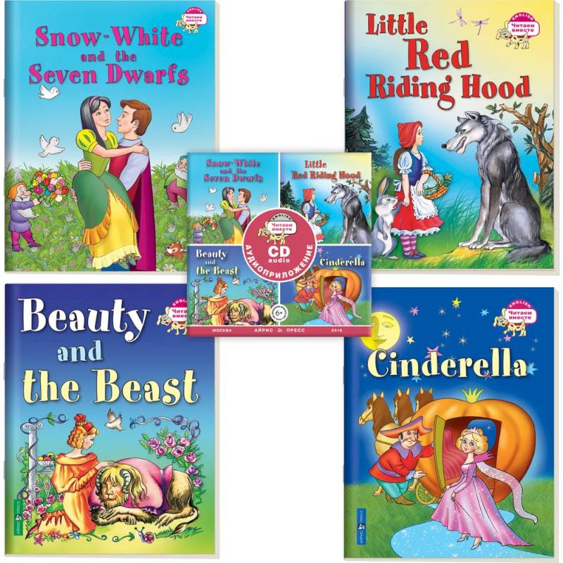 Комплект состоит из CD-диска и 4 книжек с адаптированными детскими сказками на английском языке.